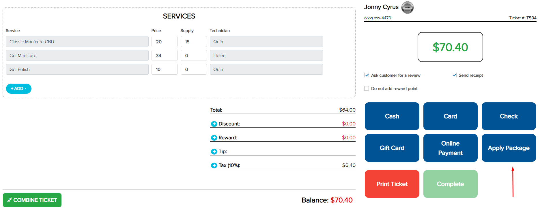 – On the checkout screen, select Apply Package to enter a package code.