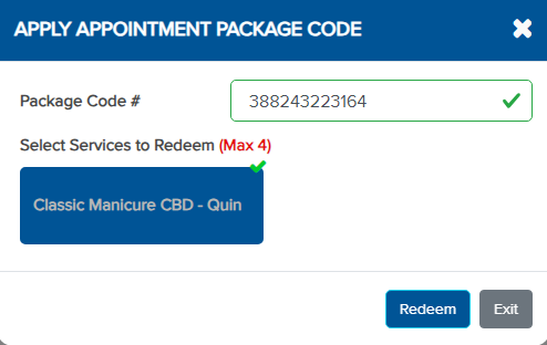 – Enter the package code to apply it.