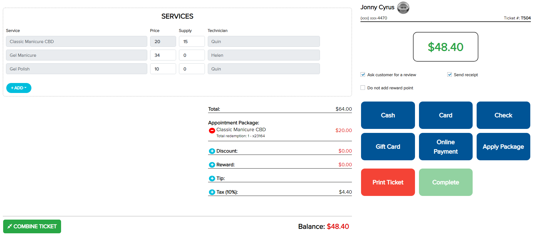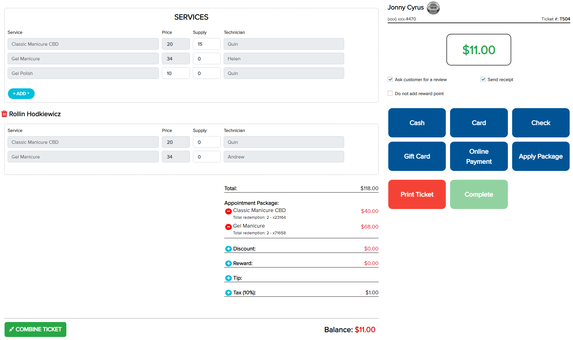 + The service applied and the deducted amount are shown.