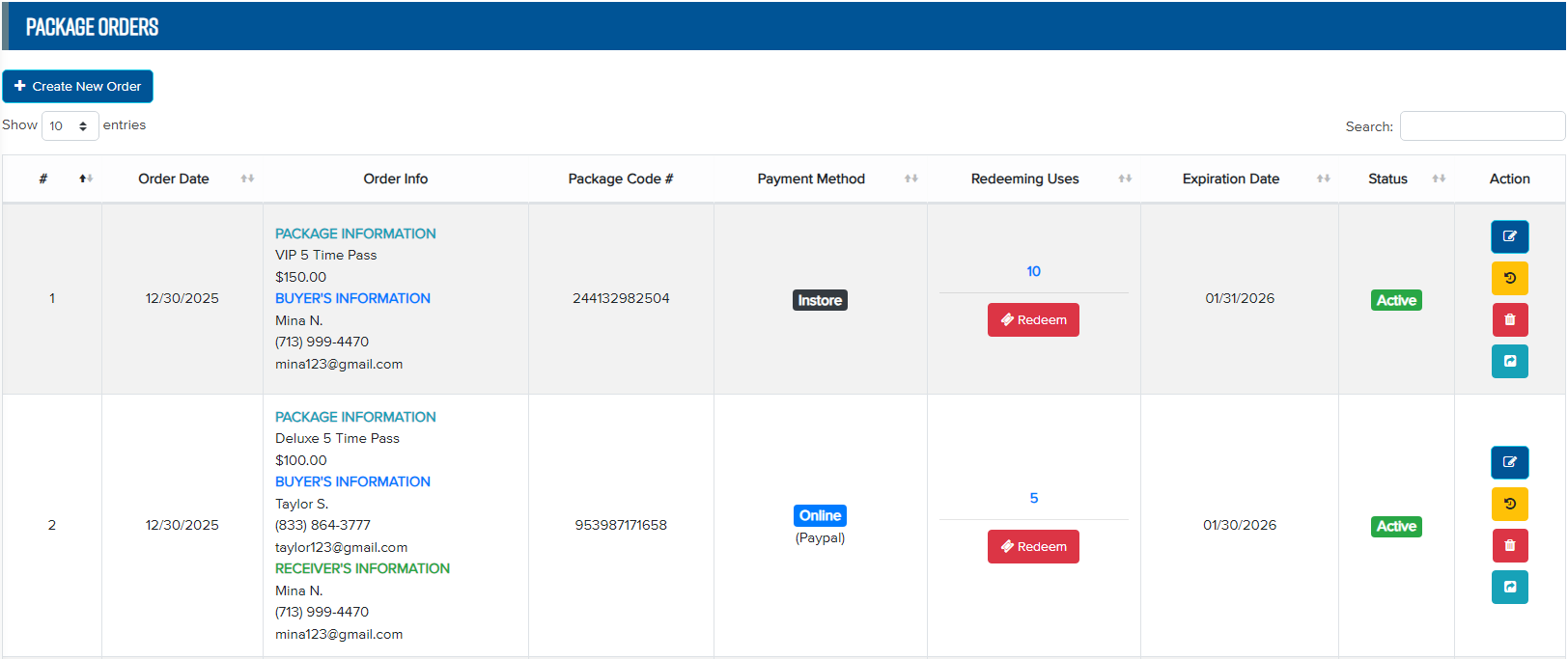 Package Orders helps you manage all package orders in one place. You can view details, edit orders, track remaining uses, and resend email or SMS notifications easily.