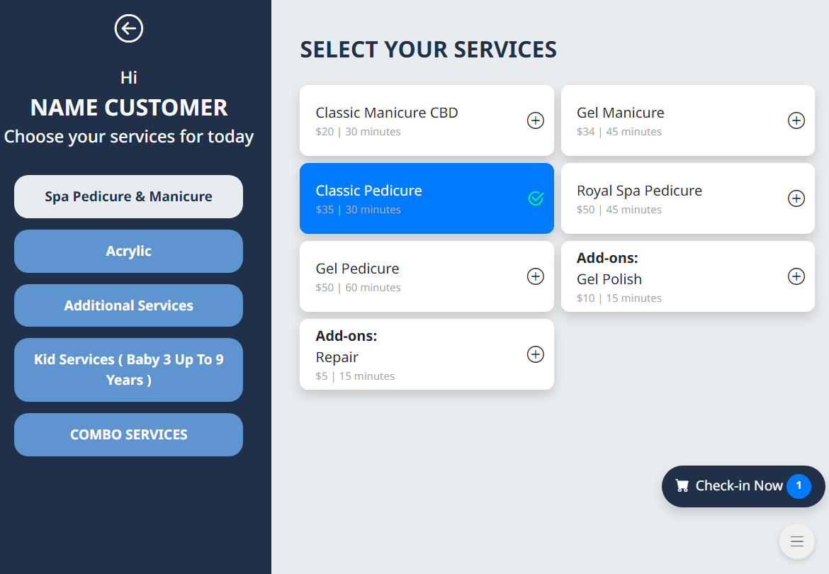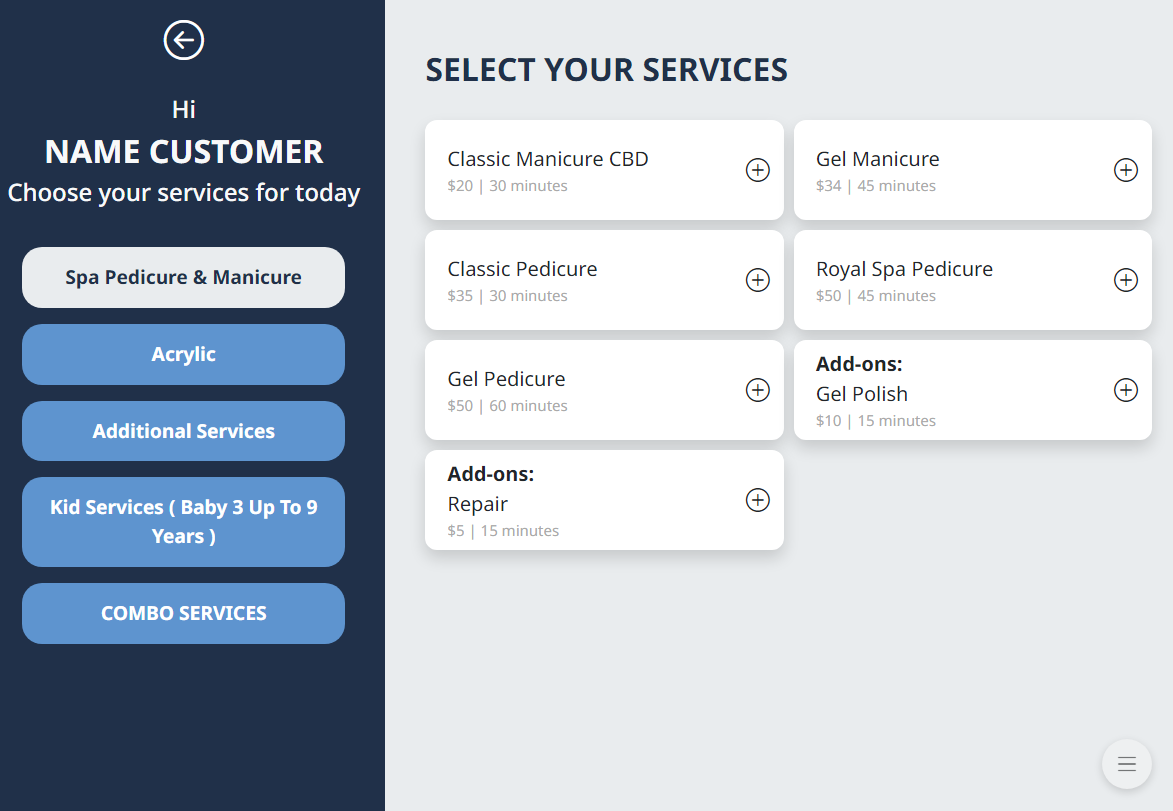 – Select a service category on the left side. The list of services in the selected category will be displayed.