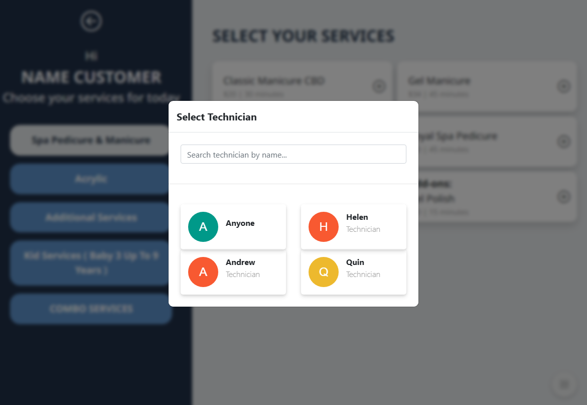 *Note: The technician must be logged in with a passcode to appear in the list. Otherwise, only Anyone will be displayed.