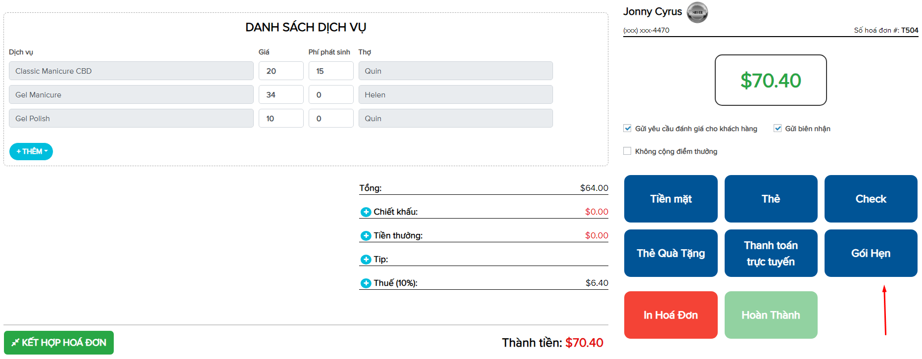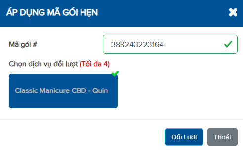– Chọn dịch vụ muốn áp dụng, sau đó nhấn Đổi lượt.