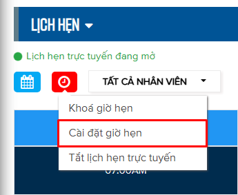 – Ở mục Quản lý lịch hẹn, chọn icon đồng hồ màu đỏ.