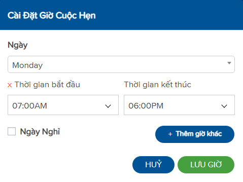– Chọn Ngày nghỉ nếu ngày đó không làm việc.